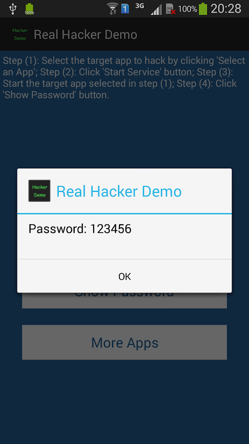 To understand how a hacker app could steal your password, download it and have a try. Hope you could learn something from it!