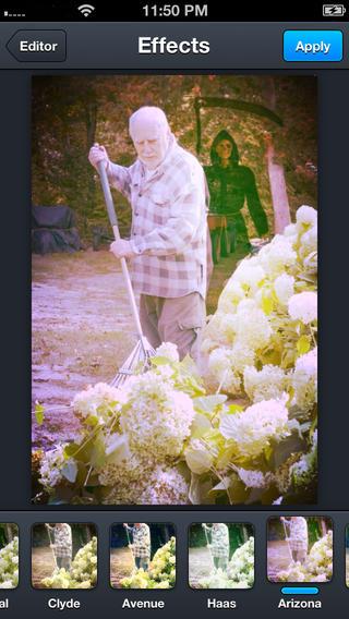 Simply take a photo or use an existing one, add an image of the Grim Reaper, edit the Grim Reaper to fit seamlessly into your picture, and share it via Facebook, Twitter, and email!
