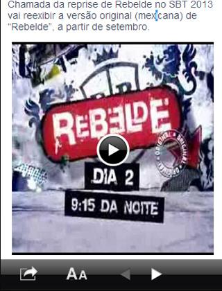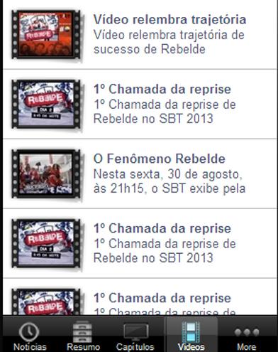 Agora você pode ter RBD em qualquer lugar e em qualquer hora! baixe o aplicativo para seu dispositivo para fica bem informado sobre o que vai rolar na Novela Rebelde, que esta sendo reapresentada no SBT de Segunda a Sexta Feira às 21h15
