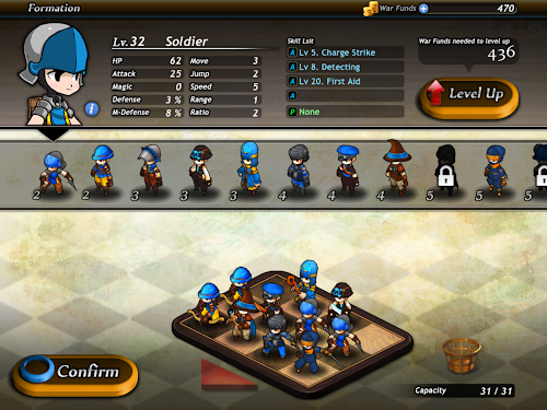 4. With the war funds obtained from battles, units can be upgraded. When units are upgraded, a new skill is unlocked or a profession from a higher ranking class can be used.