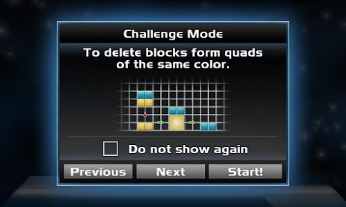 If you only have time for a two-minute-break, try the Time Attack Mode. In Time Attack you have to form as many quads as possible in 90 seconds. So try to place the falling units quickly and discard unsuitable ones on the side.