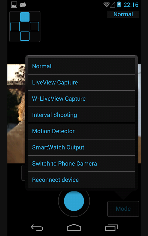 and 'liveview rotate button', a menu for switching to phone camera are included.