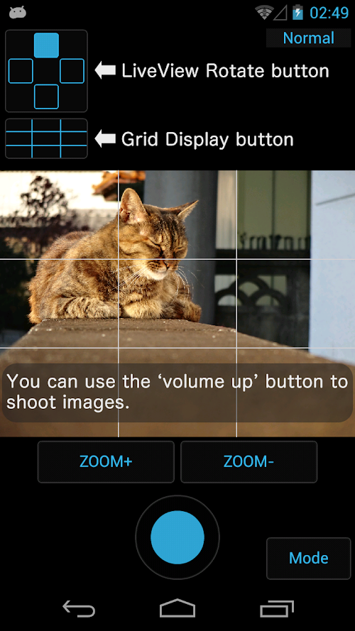 Normal mode for taking pictures. You can use the 'volume up' button to shoot images.