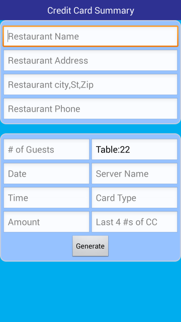 This simple to use app takes the information you already know and regenerates that lost or misplaced receipt. Leave your copy of the credit card summary at the restaurant, quickly and easily recreate it. Company requiring itemized receipts and you always forget to grab it, recreate it. Printer in the taxi not working recreate it.