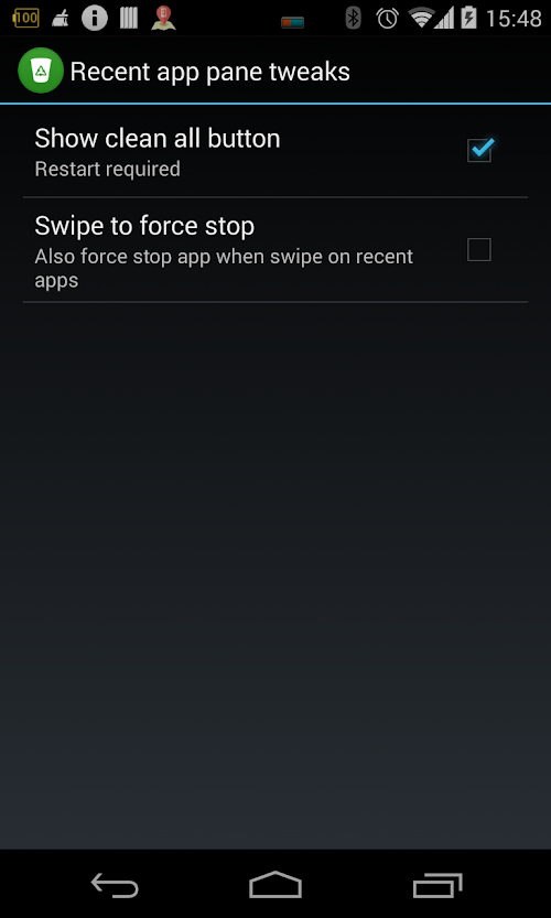 - "Clean all recent apps" button on Recent apps screen (AOSP ROM only)