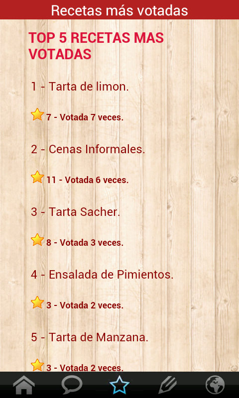 Ingredientes, elaboración, compartir recetas de cocina con tus amigos en twitter o facebook, lista de la compra, top 5 de recetas caseras más votadas y por supuesto... envía tu propuesta de receta a nuestra Chef. ¿Quieres saber cómo cocinar un plato en concreto? Envíale tú propuesta a nuestra Chef y ella lo cocinará y ¡publicará la receta!