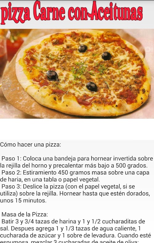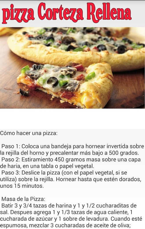 Con esta aplicación os ponemos a disposición recetas de pizza totalmente en español, encontrarás recetas para todos los gustos con unas instrucciones básicas muy fáciles de entender para el usuario.