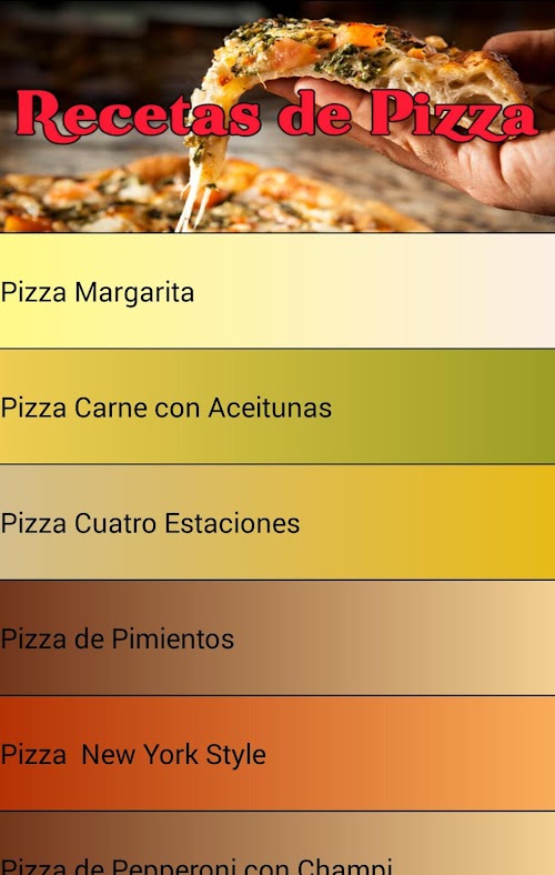En próximas actualizaciones iremos aumentando la cantidad de recetas para conseguir una gran variedad. Nos podéis dejar en comentarios sugerencias de recetas que queráis, trabajaremos para poder ofreceros recetas de pizza para todos los gustos.With this application we put pizza recipes available entirely in Spanish, you'll find recipes for everyone with basic instructions very easy to understand for the user.