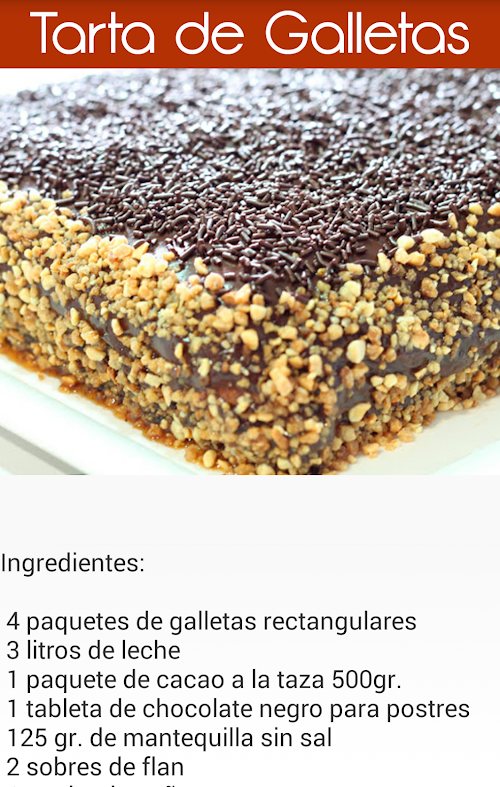 Recuerda que puedes dejarnos tus sugerencias en comentarios para ir mejorando poco a poco la aplicación e ir subiendo nuevas recetas de tartas fáciles.Cake recipes show you a recipe of the most famous and easy cake to make, soon we will be implementing new recipes with more images of cakes. If you want a cake recipe in particular only have to ask and find we have a variety of recipes for pies that I will be showing progressively, in this first version teach some simple recipes to make for who decides to make delicious cakes with you will be surprised to find family and friends.