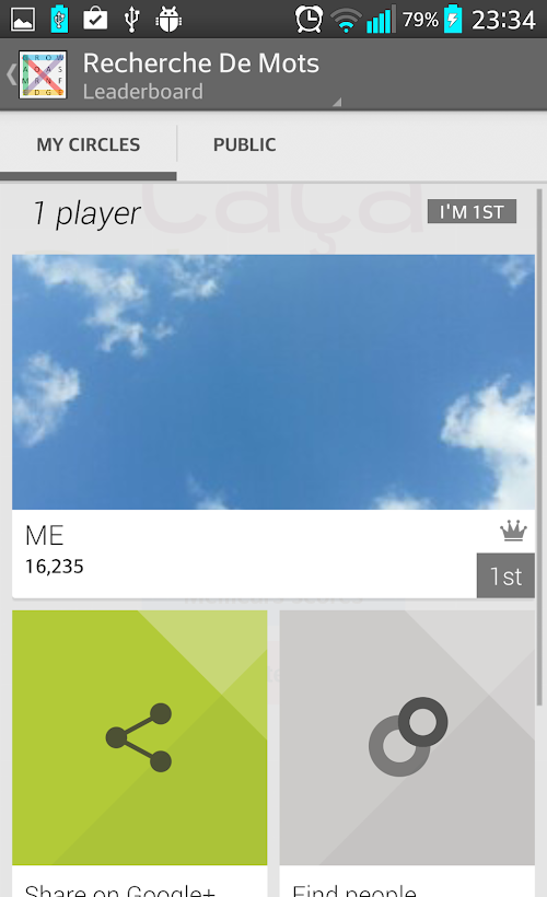 Le score est calculé en fonction de la longueur des mots trouvés et le temps écoulé. Lorsque vous avez trouvé tous les mots dans le puzzle, le score est envoyé au tableau de bord en ligne sur Google+. Vous pouvez voir les meilleurs joueurs quotidienne, hebdomadaire ou pour tous les temps.