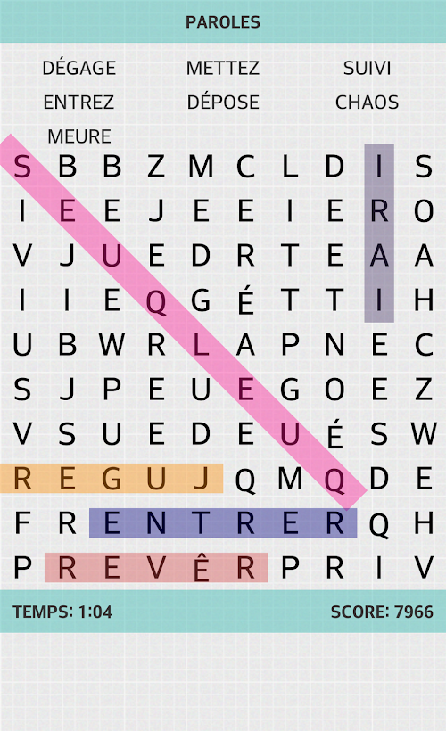 Que tout le monde amusant!Fans Mingled words! We have good news for you! Word Search is now in French with online dashboard feature on Google+.