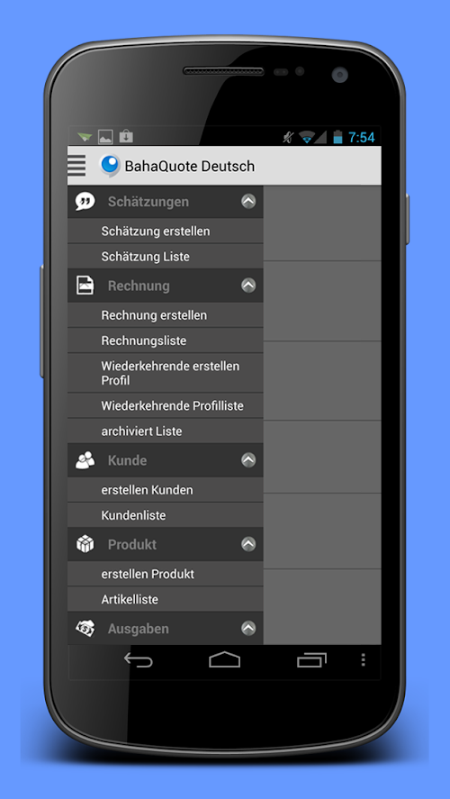 • Berichterstattung Faehigkeiten mit Rechnung, Zahlungseingänge und Spesenabrechnung.Accounting and billing offline mobile application is also available without internet connection jetz to this free invoice software auszuführen.Die proposal and share the best software is offline billing inklusuve nue skills from Syncronisirung of mobile phone data to the web and vice versa.