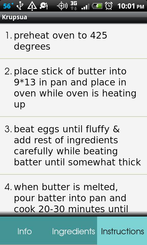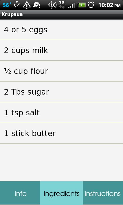NOTE: I wouldn't mind picking up work on the app again, but there is one catch: To put an app up on Google Play, you need to put a password on the app (This keeps bad guys from tricking people into installing fake versions of an app). Anyway, the way its set up, there is no way to change the password... and of course I never wrote down the password for this app :( So to start making updates to it I would have to release it as a different app. The main problem with this is that you would not be able to transfer your existing recipes over (you could email and import them one at a time though).
