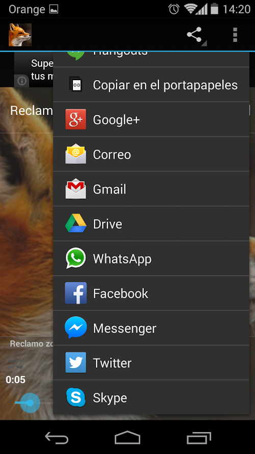 También puedes compartir el sonido mediante el whatsapp y otras aplicaciones de comunicación With this application you can play the sound claim for fox hunting.
