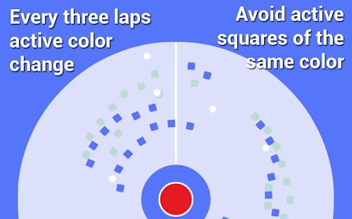 Your goal is to make as many laps as you can but be careful - don't run in your tail! You only collide with squares that has the same color as you. Your tail can be destroyed by running into bombs. Every three laps color will change. Earn highest score, share it with your friends and in leaderboards!