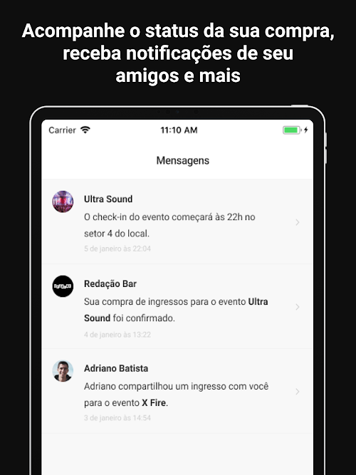 * Ingressos, listas e reservas;
