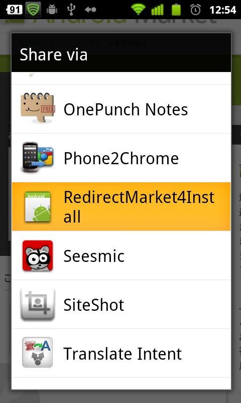 If this application program is selected from [menu]-[page shared] on AndroidMarket For Web Browser, AndroidMarket for the Android device is displayed.