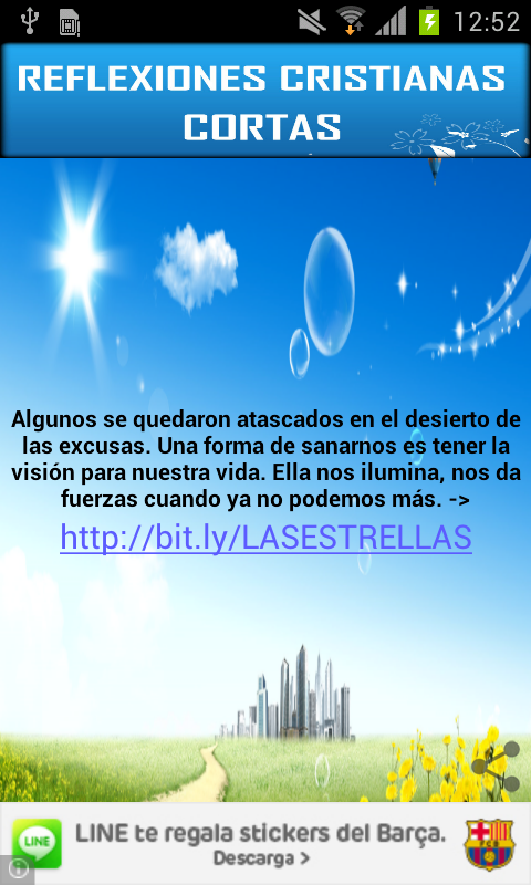 Recibe Reflexiones Cristianas Cortas gratis en tu móvil todos los días, son un fragmento corto que te hará reflexionar en distintos aspectos de tu vida cristiana. Las reflexiones cristianas cortas diarias de esta aplicación te darán, en muchas oportunidades, una respuesta directa de Dios.Receive free Short Christian Reflections on your mobile every day, are a short piece you will reflect on different aspects of your Christian life. Short daily Christian reflections of this application you will, in many instances, a straight answer from God.