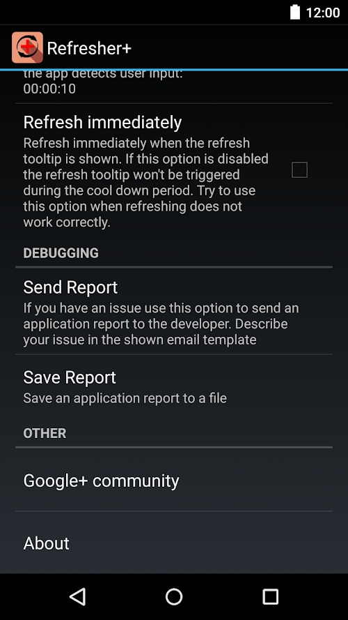 ✓ Detect when you use the Google+ app and pause refreshing for a configurable period (cooldown)