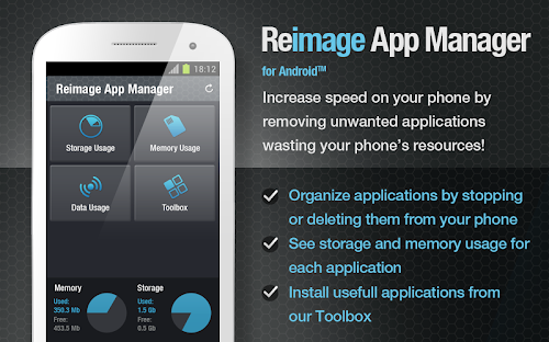 Reimage app Manager will show you which Apps you use the most and how much storage space is available. Remove apps that are draining your battery, mobile data, and storage space.