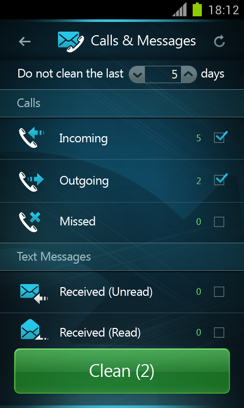 “Auto Clean” feature - you can decide either to clear all calls and text messages information, or per specific time periods. Select specific time periods you would like to clean, for example select “Do not clean the last 5 days” enabling you to hold on the recent data.