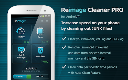 Reimage intelligent technology helps you clear your browser and remove irrelevant app data from both the device’s internal memory and the SIM card.