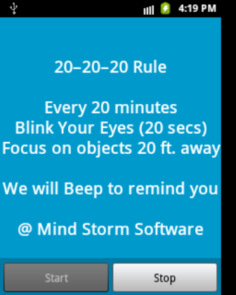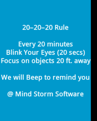 4. This will start the process of reminding you every 20 minutes via a Beep. The Beep is a reminder to relax your eyes.