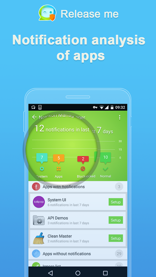 • With notification analysis, you can easily find which app post most notifications to you, disturb you much and you can close its notification feature.