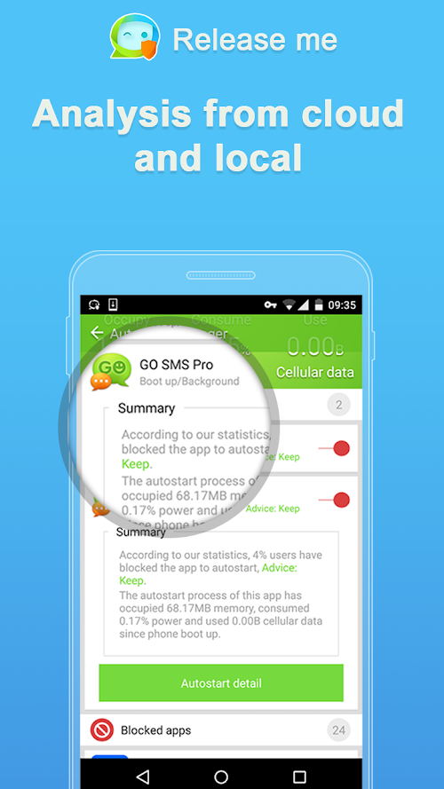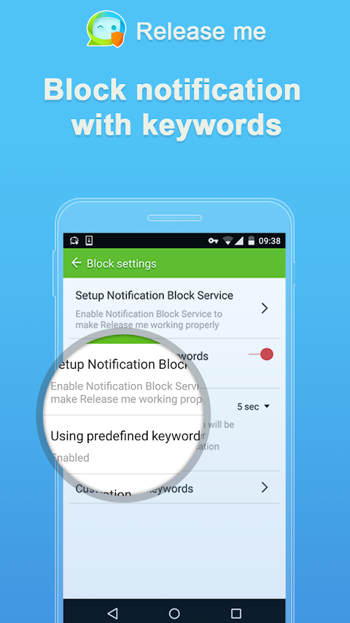 Release me lets you manage your apps's notifications based on our advice and analysis of your notification history. You can block notifications containing unwanted keywords. You can also manage autostart apps with Release me(Need ROOT access).