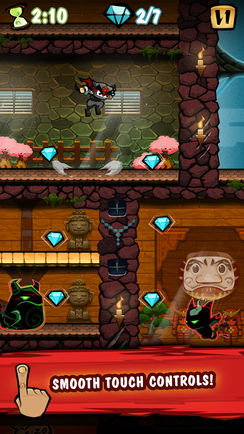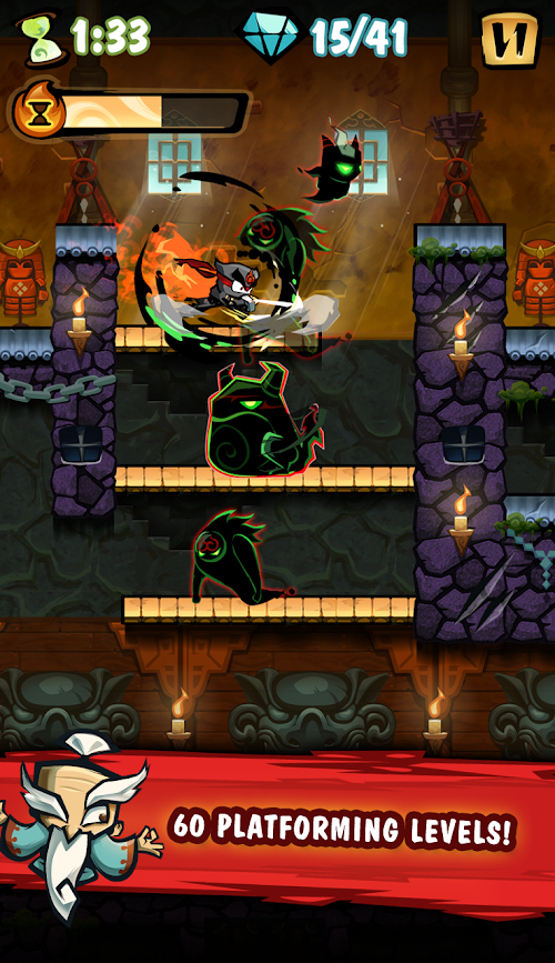 - Master deadly ninja moves and skills with smooth platforming controls