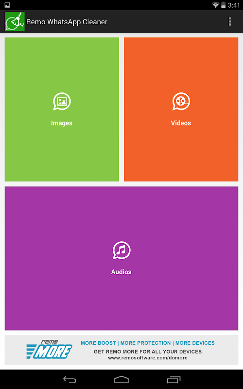 Remo Cleaner for WhatApp is a simple app for cleaning shared WhatsApp files like images, videos and audio files those are stored in your phone.