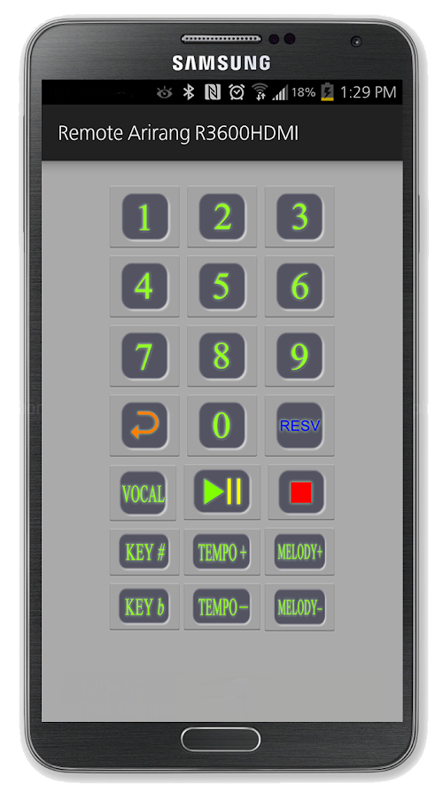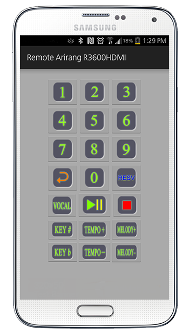 Karaoke Arirang R3600HDMI Remote app is the simple remote control device for Samsung / HTC Android use IR blaster to control DVD Karaoke machines R3600HDMI Arirang. Very simple, no need to install configuration. Download the application to your computer and enter the song right on your phone.