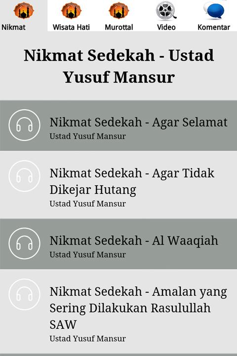 Islamic Devotional Yusuf Mansur app offers a collection of Islamic lectures from Ustad Yusuf Mansur with a wide range of topics from events hosted by Ustad Yusuf Mansur such joy Alms, Tourism Heart, and various Islamic murottal.