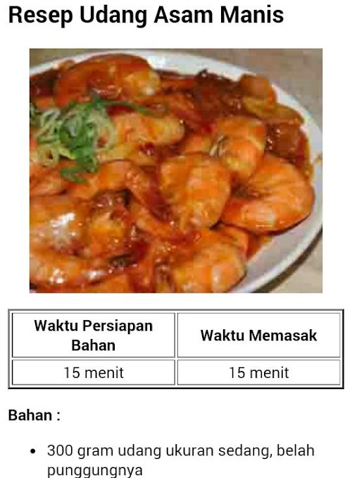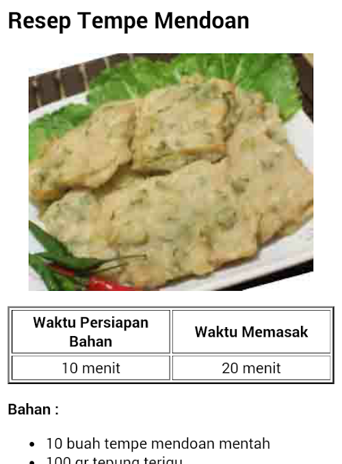 Menu-menu dalam aplikasi ini beraneka ragam dari olahan sayur, tempe, tahu, telur, daging, maupun seafood. Tidak perlu takut jika rasanya tidak enak atau sulit, karena dalam aplikasi ini beisikan resep - resep yang bahan dan bumbunya mudah dijumpai di toko - toko maupun swalayan.