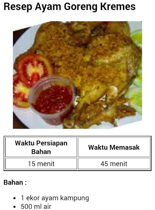The menus in the application of a wide range of processed vegetables, tempeh, tofu, eggs, meat, and seafood. No need to worry if it feels uncomfortable or difficult, because in this application beisikan recipes - recipe marinade ingredients and easy to find in stores - stores and supermarkets.