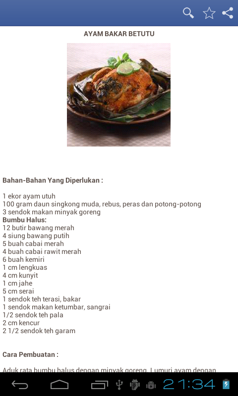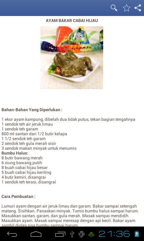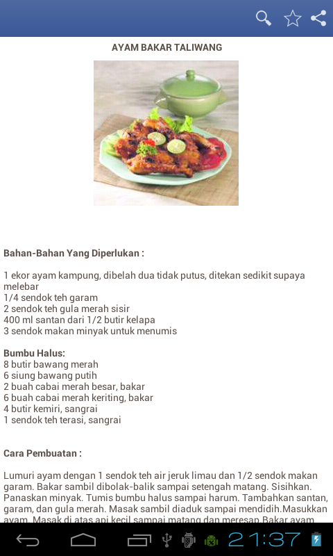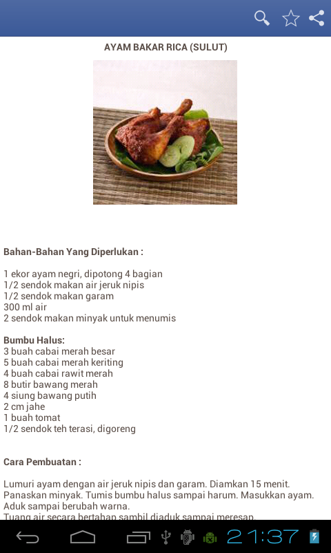 Aplikasi ini berisi resep masakan ayam bakar khas dari berbagai daerah di Indonesia.