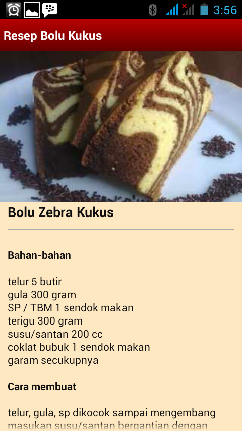 Applications steamed sponge recipe is very easy to use and can be run without an Internet connection in addition to the very sweat run this application because it does not take up much memory.