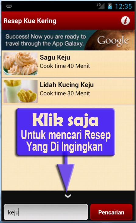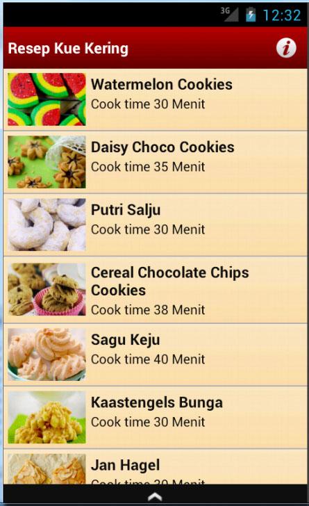 Cobalah resep kue kering dari aplikasi ini. Aplikasi Aneka Resep Resep Kue adalah aplikasi yang berisi kumpulan Resep Kue favorit, mulai dari yang berbahan keju, kacang, coklat dll