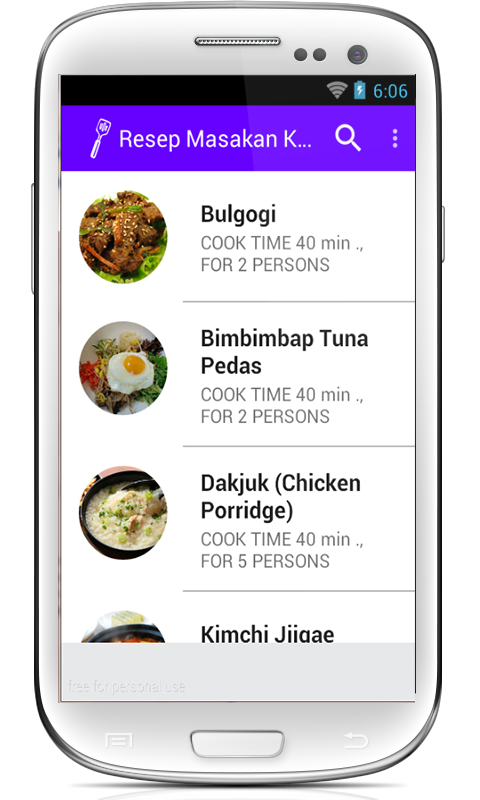 This version of Resep Masakan Korea Android App comes with one universal variant which will work on all the Android devices.