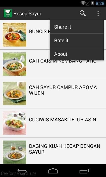 Aplikasi ini berisi ratusan resep masakan sayur yang dapat anda gunakan sebagai referensi atau panduan memasak, terutama berbahan sayuran.