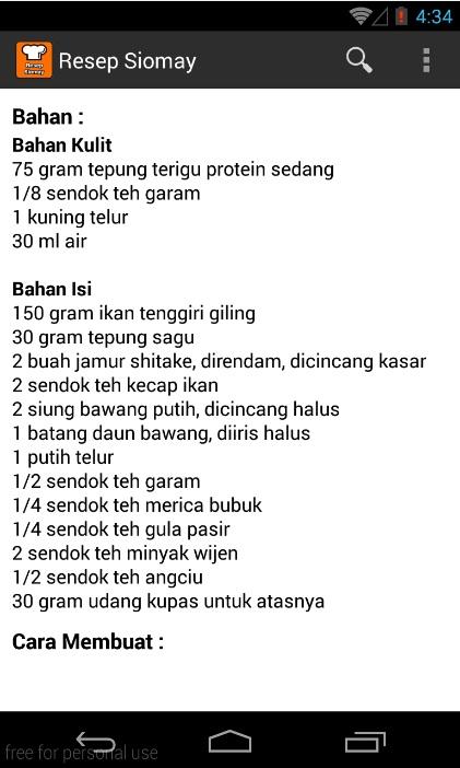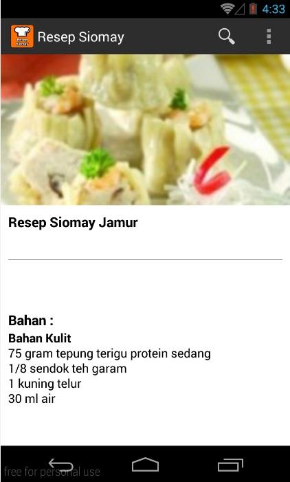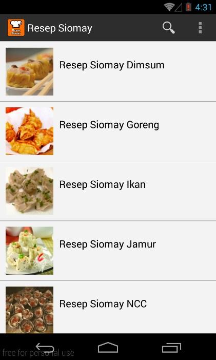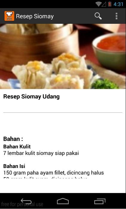 Mungkin aplikasi ini cocok bagi anda yang mencari resep atau referensi membuat siomay. Di dalamnya terdapat berbagai macam resep olahan siomay berbahan dasar seperti : ikan, tahu, jamur, udang, dan sayur.