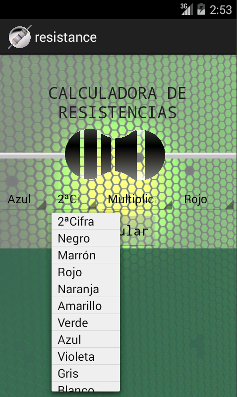 Resistance es una aplicación gratuita para poder calcular el valor de la resistencias con cuatro bandas de color.
