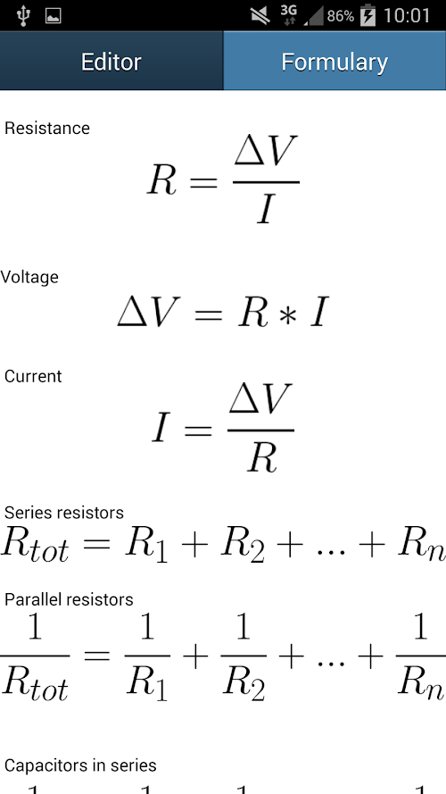 You can also access at a formulary with resistors formulas and capacitors.