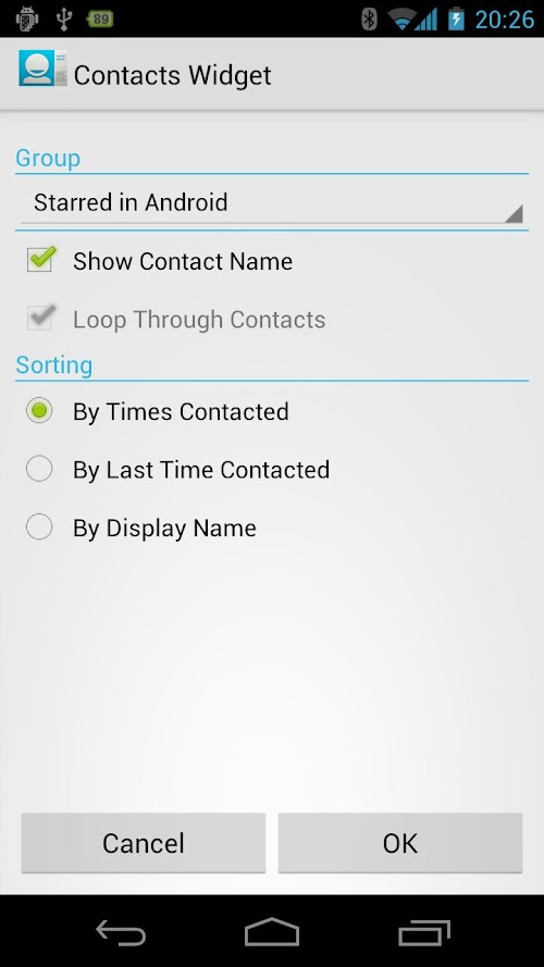 * The list of contacts could be either starred contacts or from any of your contact groups