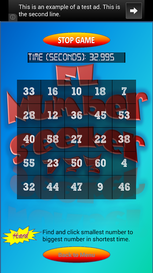 All you need to do in this game is to seek and click the number from the smallest to biggest. The faster the better. Top 10 scores will be stored. You could challenge your friend too, and see if they could beat you.