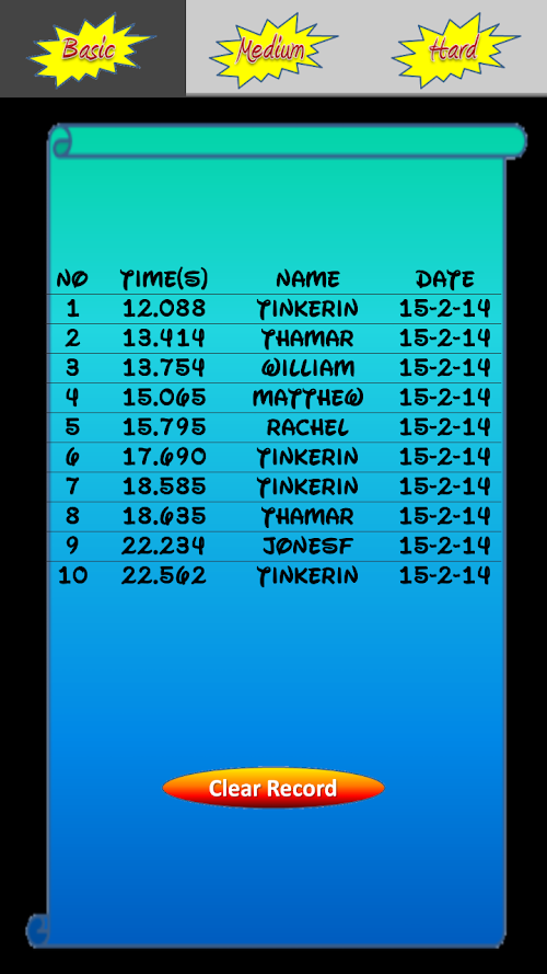 - Basic Level is basically from 1 to 25, and the number will be removed after correctly clicked.