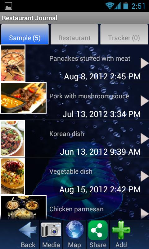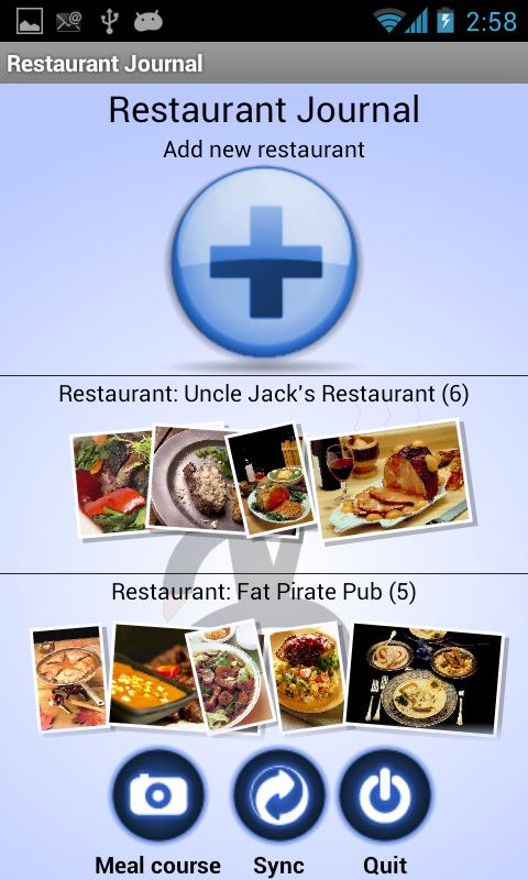 The Restaurant Journal is a MajorForms android application that allows you to document your restaurant experience incorporating images, video, audio recordings, and/or text. It enables the data to be synchronized to a free website created by you to store, edit, and/or share the restaurant information you have collected with others. The application allows you to remember what you ordered, how you rated the meals and service, and to see if costs have changed since you last visited the restaurant. You can also allow family and friends to view your experience during or after your dinner by sharing it through your website, Facebook or Google+, Twitter, Linkedin, e-mail, etc. Once the restaurant data is uploaded to your website, you can edit the data, create reports and/or maps, and download the data or reports to spreadsheets or other documents. You do not need to have access to the internet to run the application, but if you do, you can upload your data and preserve it. Give it a try, it is free. Check out similar apps on www.majorforms.com.