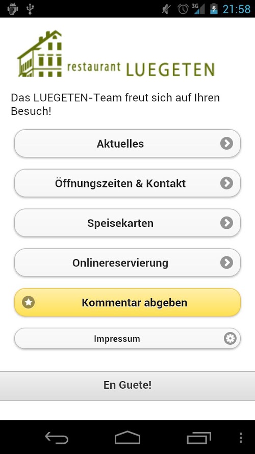This version of Restaurant LUEGETEN Android App comes with one universal variant which will work on all the Android devices.