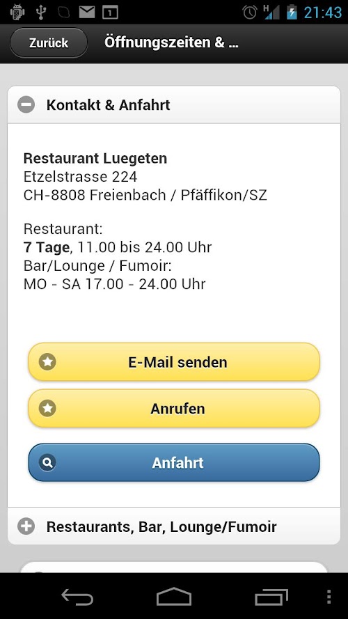 Offizielle APP des Restaurant LUEGETEN in Pfäffikon, Schwyz.