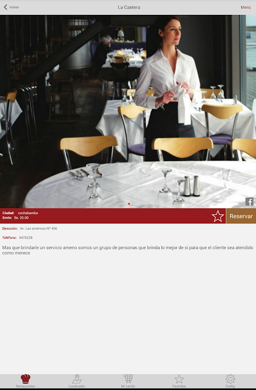 Our guide focuses not only on location and contact number of the restaurants. In Bolivia Restaurants App you will find the complete menu for each establishment with a detailed description of their products.